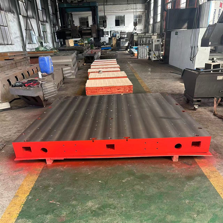 鑄鐵平臺(平板) 制造標(biāo)準(zhǔn):平臺按國家GB7947-1999標(biāo)準(zhǔn)制造。 平臺 制成筋板式和箱體式,工作面有長方形、正方形或圓形。工作面采用刮削工藝,工作面上可加工V形、T形、U形槽和圓孔、長孔等。